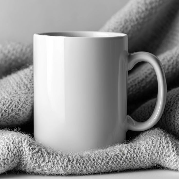 Classic white ceramic mug ready for custom designs.